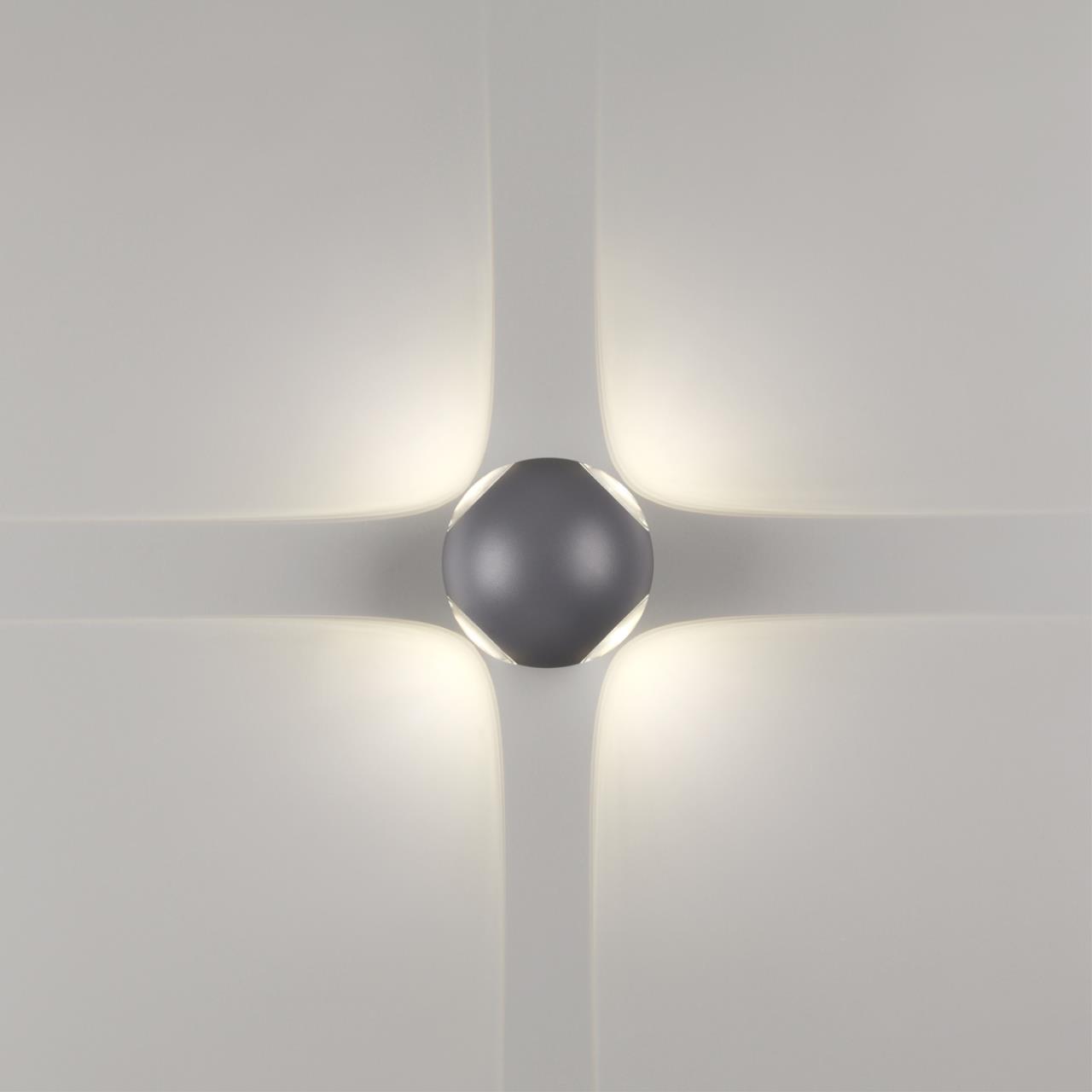 Эта модель создана для аккуратной акцентной подсветки фасада и входной группы: оптические линзы формируют выразительные геометричные лучи, благодаря чему уличный светильник не просто освещает, а эффектно зонирует пространство. Нейтральный белый свет 4000K делает фактуру стен и ландшафтные элементы более читаемыми, а алюминиевый корпус в темно‑сером цвете гармонично сочетается с современными фасадами и ограждениями. Такие особенности выгодно отличают устройство от типовых уличных фонарей с рассеянным светом.