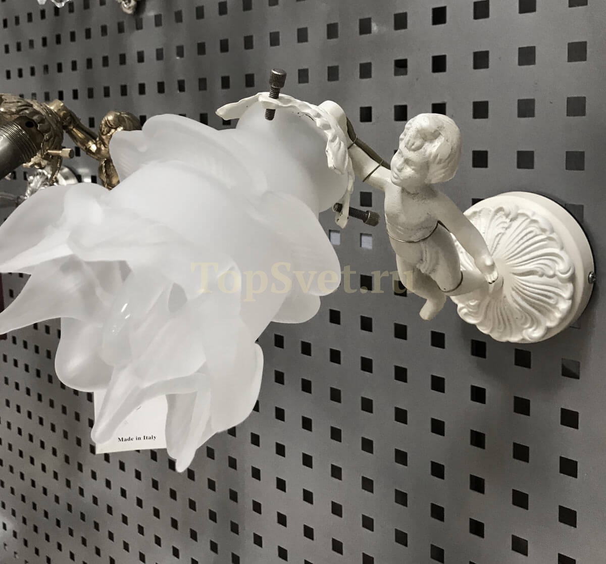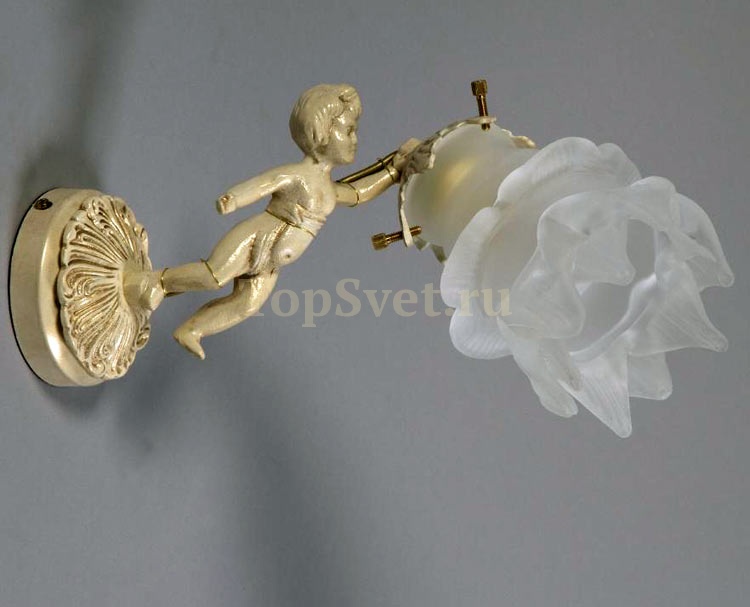 Корпус настенного светильника реализован из прочного бронзу, цвет арматуры - бежевый, цвет плафона - белый, что придает этому светильнику благородности.
