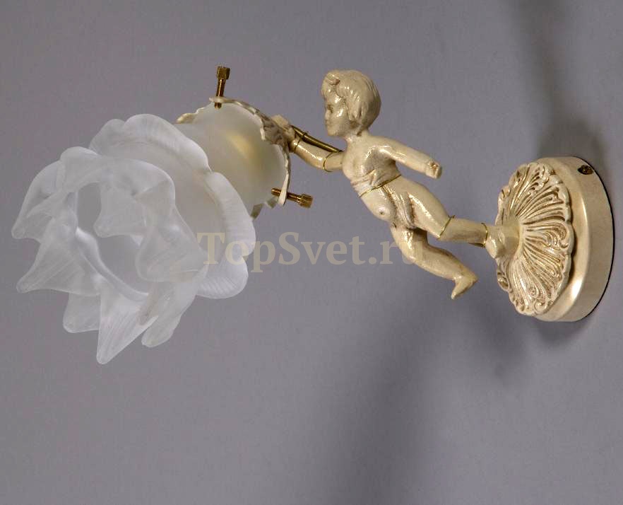 Корпус настенного светильника реализован из прочного бронзу, цвет арматуры - бежевый, цвет плафона - белый, что придает этому светильнику благородности.