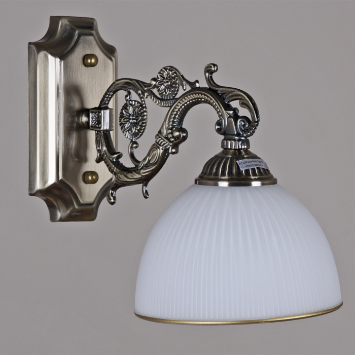 Корпус настенного светильника реализован из качественного металл, цвет арматуры - бронзовый, цвет плафона - белый, бронзовый, что придает этому светильнику благородности.