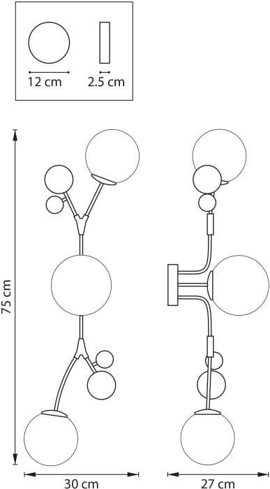 В этой модели настенного светильника установлены лампы в количестве 3 шт. с цоколем G9, общей мощностью 15 Вт.