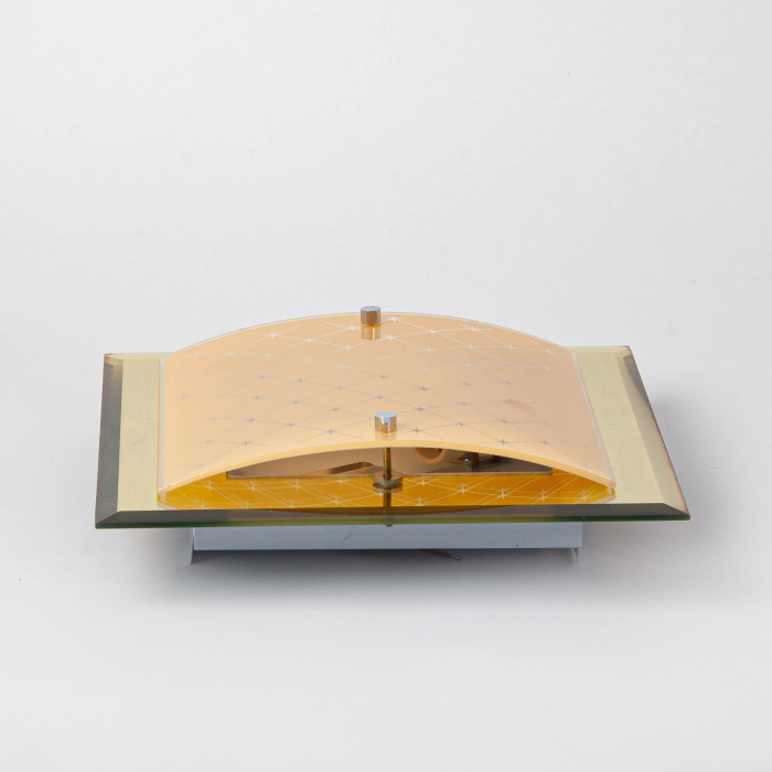 Корпус настенного светильника исполнен из надёжного металл, цвет каркаса - никель/Хром, цвет плафона - жёлтый, что придает этому светильнику гармоничности.
