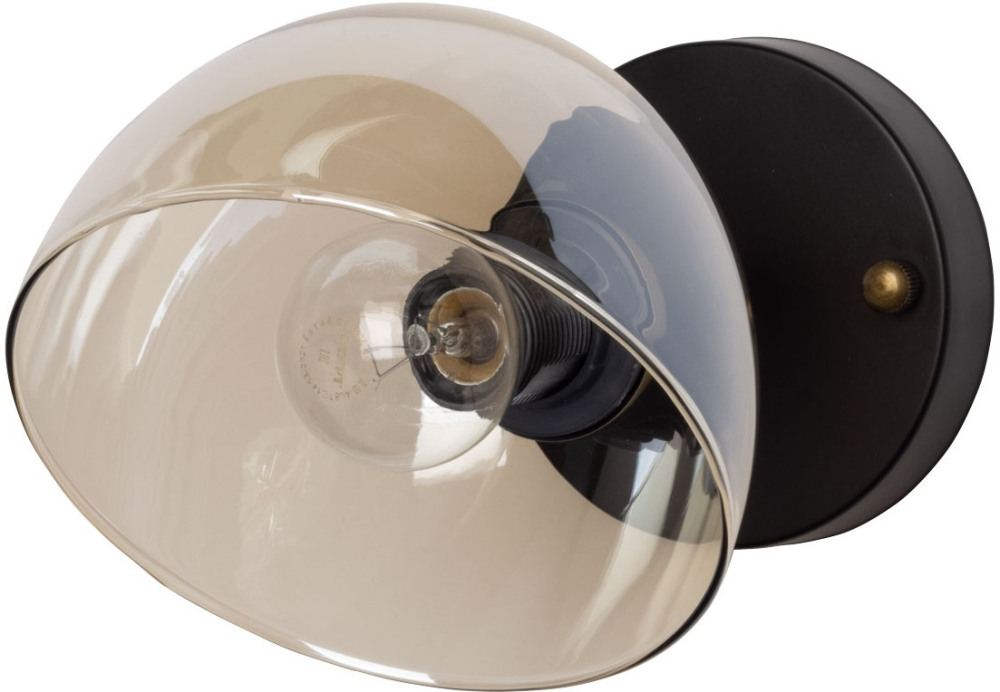 Корпус настенного светильника выполнен из качественного металл, цвет каркаса - чёрный, цвет плафона - шампань, что придает этому светильнику гармоничности.