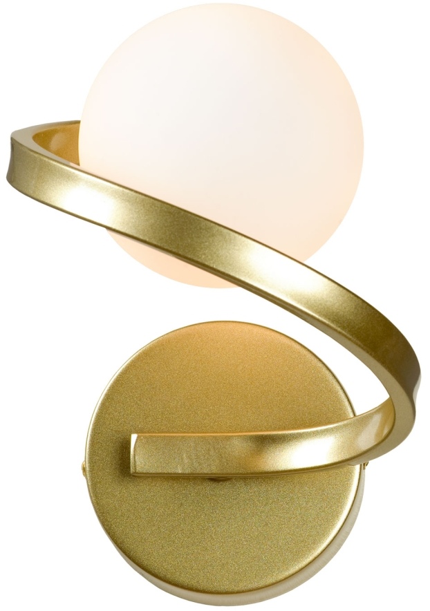 Каркас бра исполнен из надёжного металл, цвет корпуса - золото, цвет плафона - белый, что придает этому светильнику гармоничности.