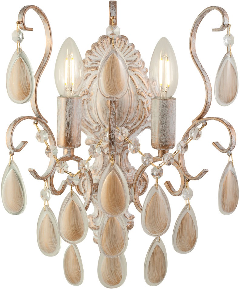 Корпус настенного светильника выполнен из качественного , цвет каркаса - золотой, белый, цвет плафона - белый, прозрачный, золотой, что придает этому светильнику изысканности.