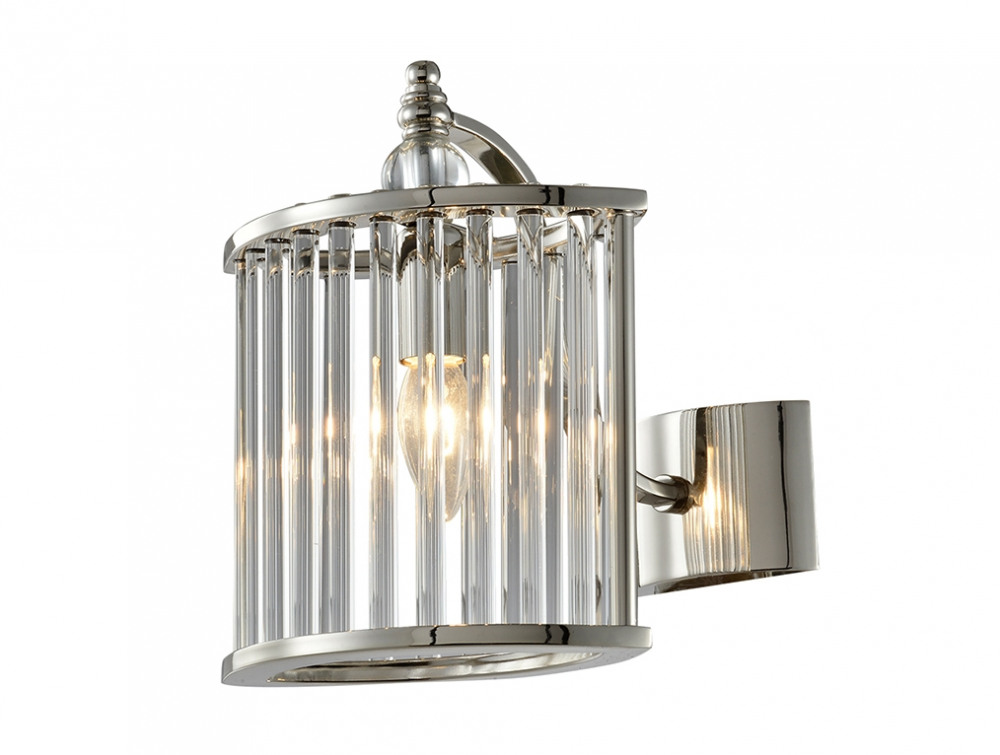Каркас настенного светильника выполнен из прочного металл, цвет каркаса - никель/Хром, цвет плафона - прозрачный, что придает этому светильнику благородности.
