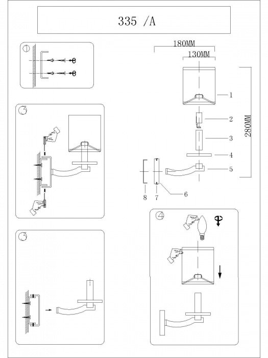 Бра 3353/A имеет хорошие размеры – ширина мм., высота 340 мм., что позволяет ему хорошо подойти для комнаты с подходящими габаритами и площадью освещения до 3 квадратных метров.