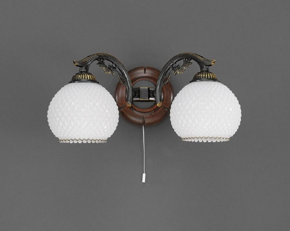 Корпус настенного светильника выполнен из качественного металл, цвет каркаса - бронза, цвет плафона - белый, что придает этому светильнику благородности.