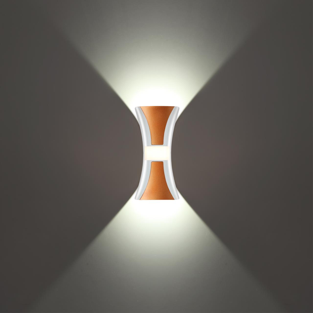 Корпус из алюминия с белой отделкой и акцентами «белый/золото» устойчив к погодным условиям: степень защиты IP54 защищает от пыли и дождя. Компактные габариты делают установку удобной даже на узких участках стены. Это уличный светильник, который выглядит минималистично и при этом выделяется направленной светотеневой графикой по сравнению с обычными моделями с рассеянным светом.