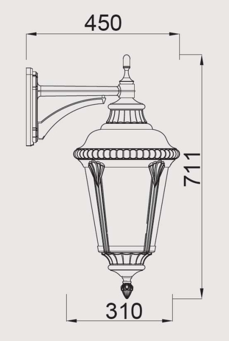 Размеры светильника: ширина 310 мм., высота 711 мм.