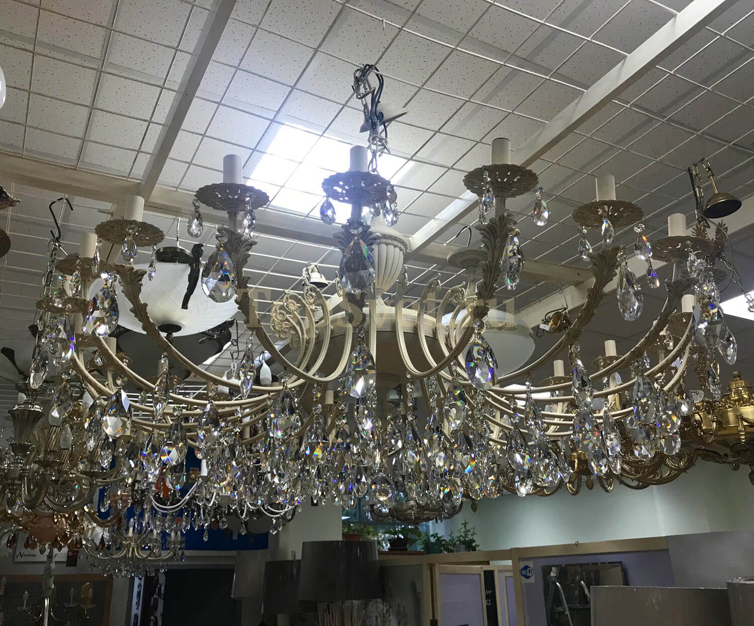 Размеры светильника: ширина 1400 мм, высота 820 мм. - такие габариты позволяют люстре идеально смотреться как в просторных, так и в небольших помещениях.
