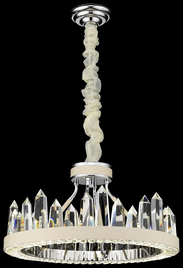Эта модель подвесной люстры для гостиной великолепно сочетается с интерьерами, оформленными в стиле современный, однако благодаря своему универсальному дизайну она также прекрасно будет выглядеть и в других стилях, добавляя нотки шика, станет визуальным акцентом в вашей комнате и принесет в неё дизайнерский шарм, тепло и изыск