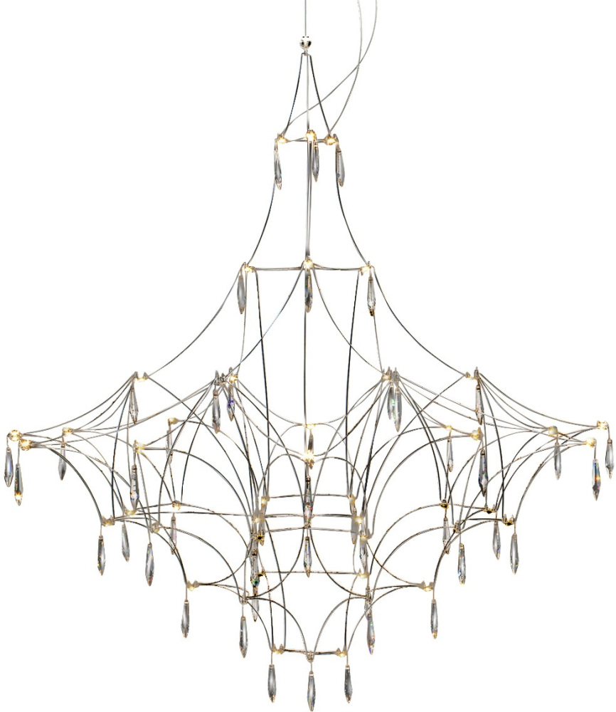 Эта модель подвесной люстры для да превосходно сочетается с интерьерами, оформленными в стиле , однако благодаря своему универсальному дизайну она также шикарно будет выглядеть и в других стилях, добавляя нотки изыска, станет фокусным акцентом в вашей комнате и принесет в неё дизайнерский шарм, тепло и изыск