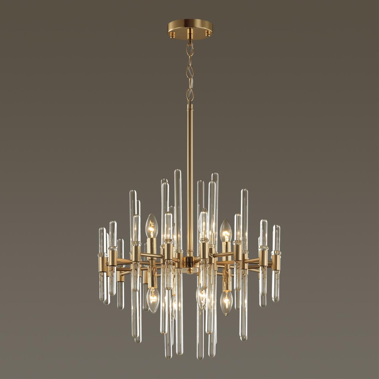 Корпус подвесной люстры создан из надежного металла, а золотой цвет добавит вашему интерьеру изысканности. Плафон выполнен в прозрачном цвете, что добавляет модели легкости, благородства и завершенность образа.