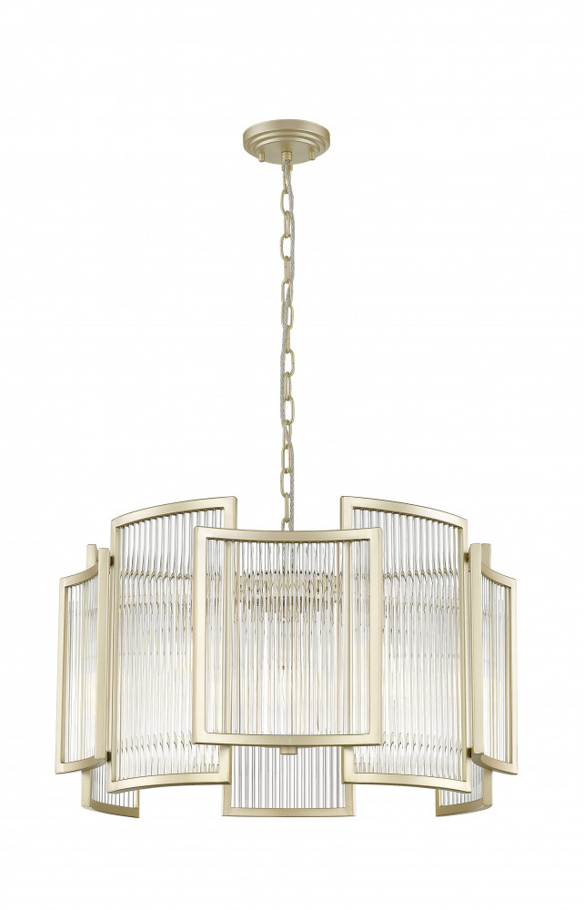 Каркас подвесной люстры создан из прочного металла, а золотой цвет придаст вашему интерьеру элегантности. Плафон выполнен в прозрачном цвете, что добавляет модели легкости, элегантности и завершенность образа.