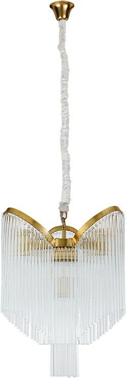 Корпус подвесной люстры создан из надежного металла, а золотой цвет добавит вашему интерьеру глубины. Плафон выполнен в прозрачном цвете, что добавляет модели легкости, изысканности и завершенность образа.