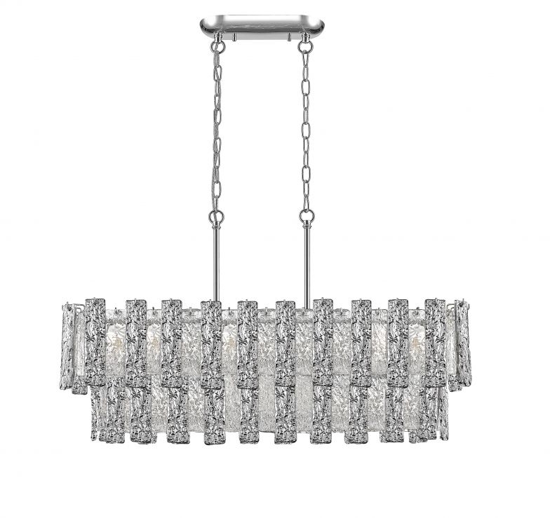 Каркас подвесной люстры выполнен из прочного металла, а никель/хромовый цвет добавит вашему интерьеру изысканности. Плафон выполнен в прозрачном цвете, что добавляет модели легкости, благородства и завершенность образа.