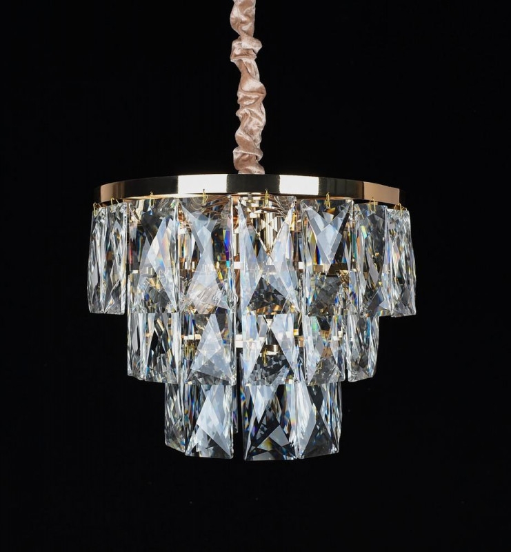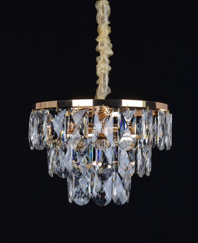 Каркас подвесной люстры выполнен из прочного металла, а золотой цвет придаст вашему интерьеру элегантности. Плафон выполнен в прозрачном цвете, что добавляет модели легкости, элегантности и завершенность образа.