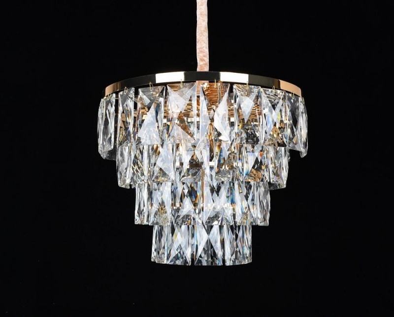 Каркас подвесной люстры выполнен из прочного металла, а золотой цвет придаст вашему интерьеру элегантности. Плафон выполнен в прозрачном цвете, что добавляет модели легкости, элегантности и завершенность образа.
