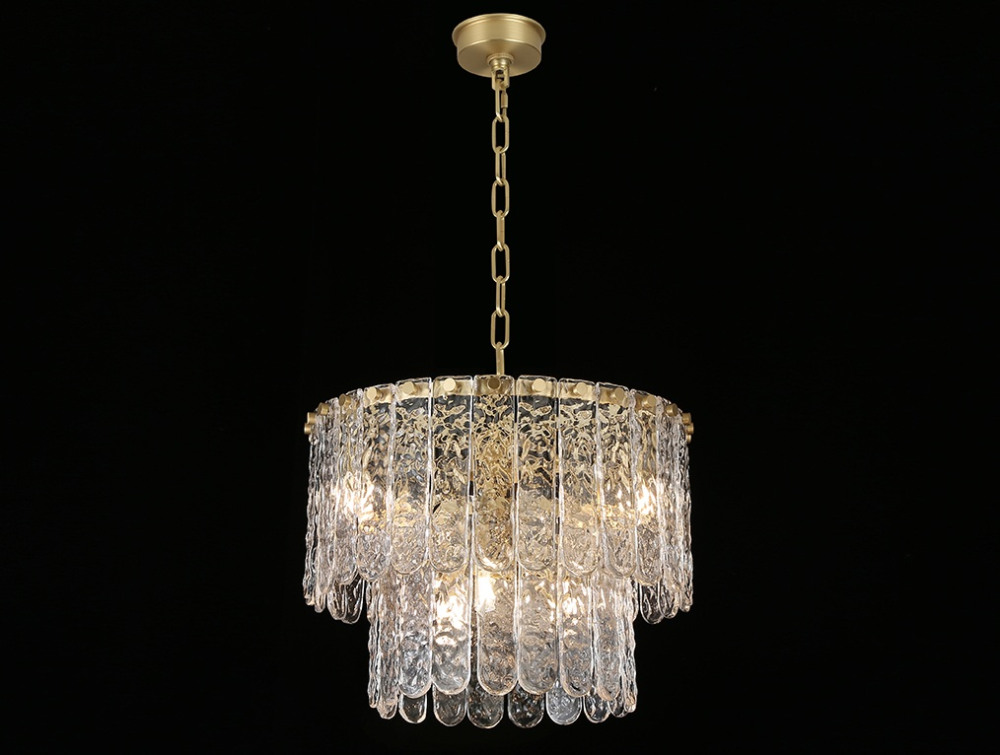 Корпус подвесной люстры создан из высококачественного металла, а латунный цвет добавит вашему интерьеру элегантности. Плафон выполнен в прозрачном цвете, что добавляет модели легкости, изысканности и завершенность образа.