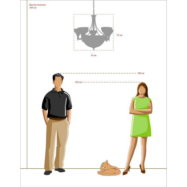 Размеры светильника: ширина 700 мм, высота 950 мм. - такие габариты позволяют люстре идеально смотреться как в просторных, так и в небольших помещениях.
