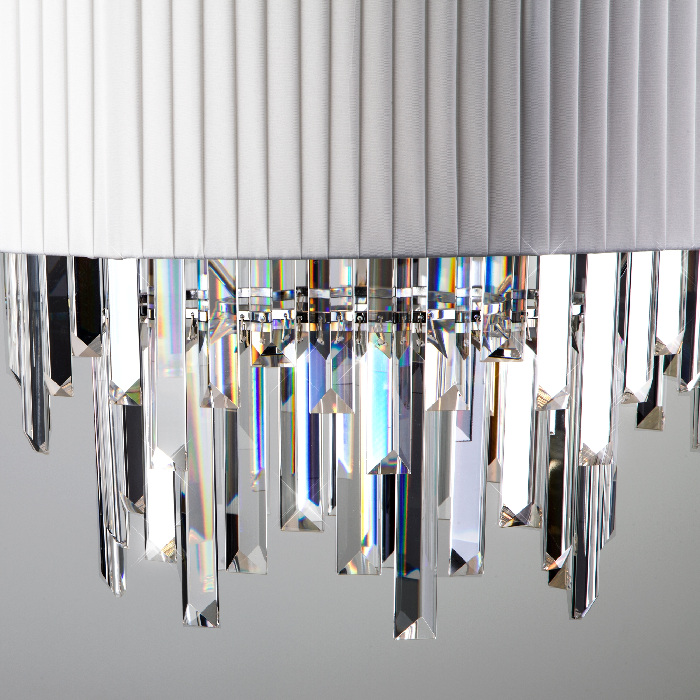 Каркас подвесной люстры реализован из прочного металла, а никель/хромовый цвет придаст вашему интерьеру изысканности. Плафон выполнен в белом цвете, что добавляет модели легкости, элегантности и завершенность образа.