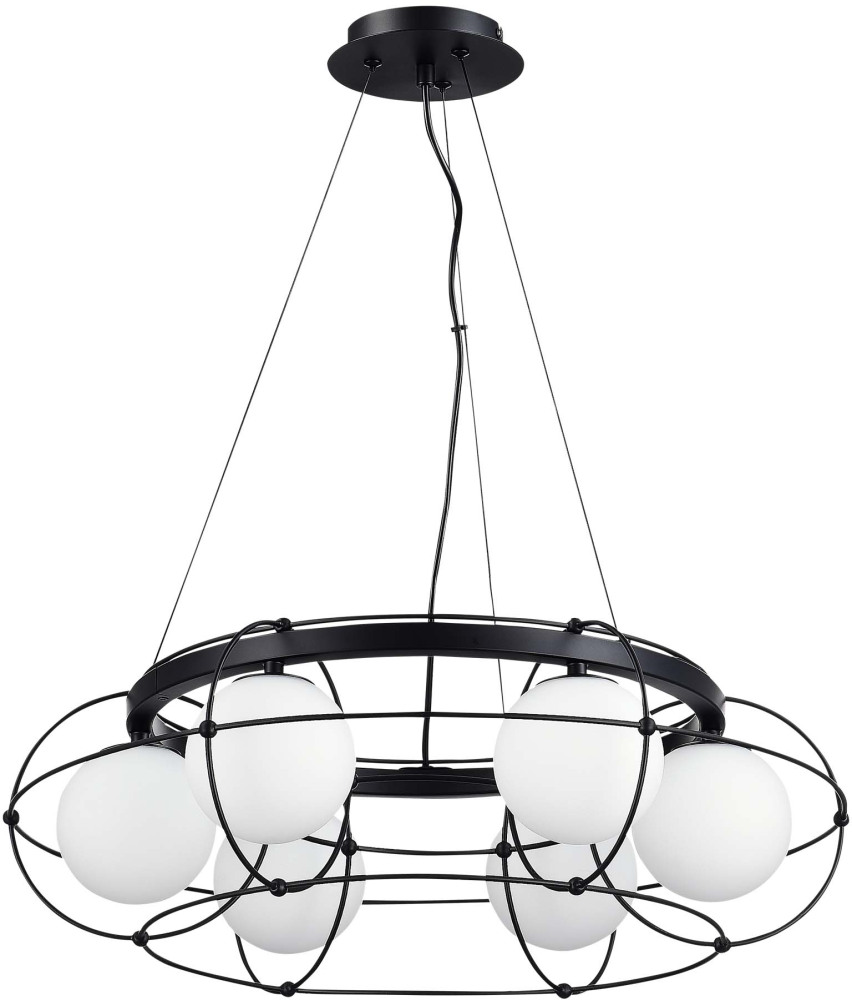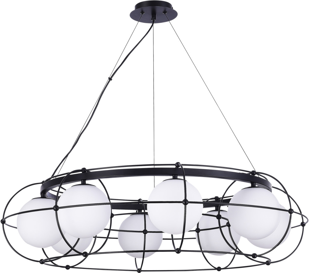 Каркас подвесной люстры реализован из высококачественного металла, а чёрный цвет придаст вашему интерьеру теплоты. Плафон выполнен в белом цвете, что добавляет модели легкости, элегантности и завершенность образа.