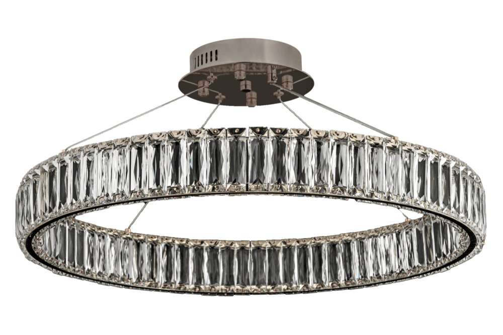 Каркас подвесной люстры реализован из высококачественного металла, а никель/хромовый цвет добавит вашему интерьеру элегантности. Плафон выполнен в прозрачном цвете, что добавляет модели легкости, элегантности и завершенность образа.