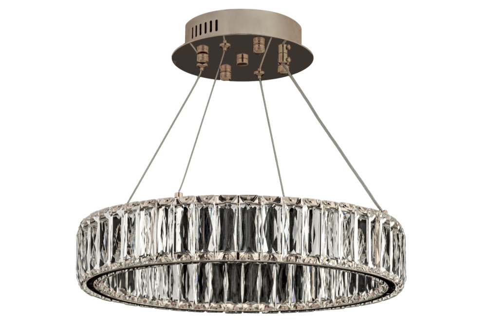 Каркас подвесной люстры реализован из высококачественного металла, а никель/хромовый цвет добавит вашему интерьеру элегантности. Плафон выполнен в прозрачном цвете, что добавляет модели легкости, элегантности и завершенность образа.