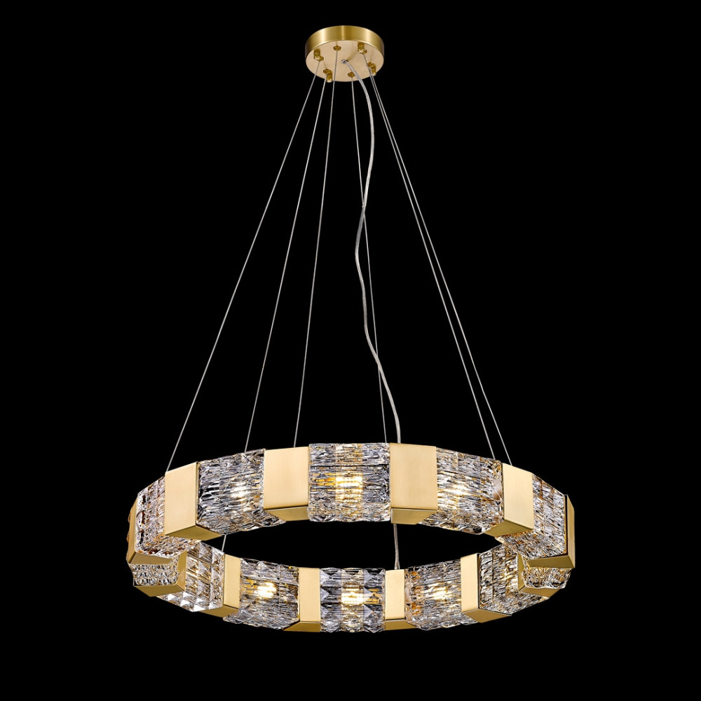 Корпус подвесной люстры сделан из высококачественного металла, а латунный цвет придаст вашему интерьеру изысканности. Плафон выполнен в прозрачном цвете, что добавляет модели легкости, благородства и завершенность образа.