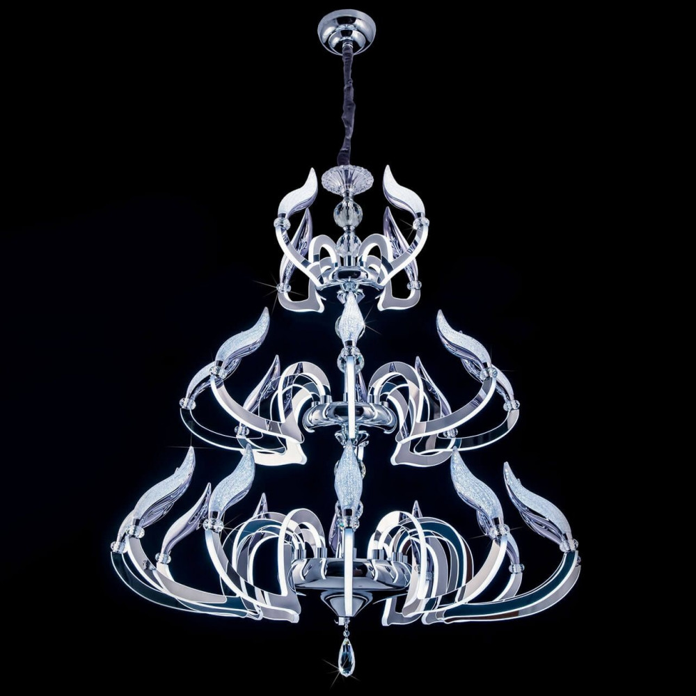 Эта модель подвесной люстры для гостиной прекрасно сочетается с интерьерами, оформленными в стиле хай-тек, однако благодаря своему универсальному дизайну она также шикарно будет выглядеть и в других стилях, добавляя нотки изыска, станет центральным акцентом в вашей комнате и принесет в неё дизайнерский шарм, тепло и изысканность
