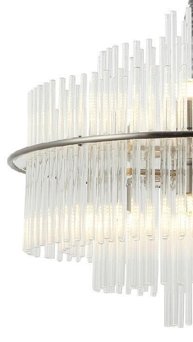 Корпус подвесной люстры реализован из надежного металла, а никель/хромовый цвет добавит вашему интерьеру глубины. Плафон выполнен в прозрачном цвете, что добавляет модели легкости, элегантности и завершенность образа.