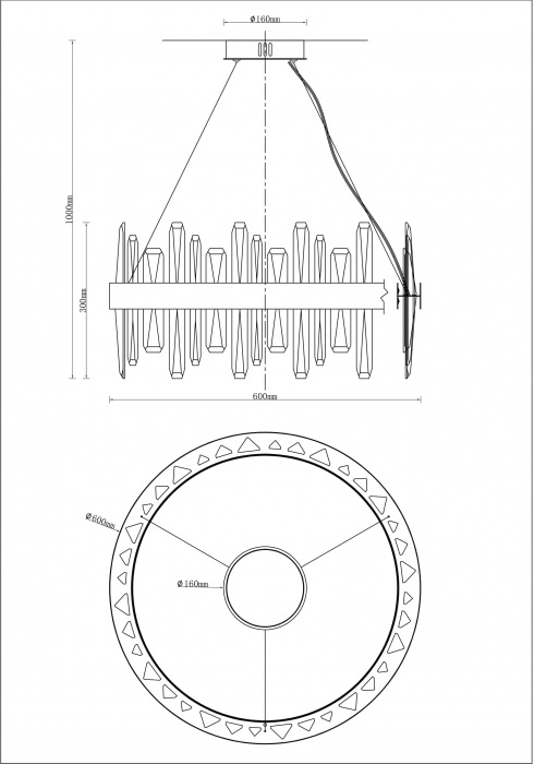 Размеры светильника: ширина 600 мм, высота 1300 мм. - такие габариты позволяют люстре гармонично смотреться как в просторных, так и в небольших помещениях.