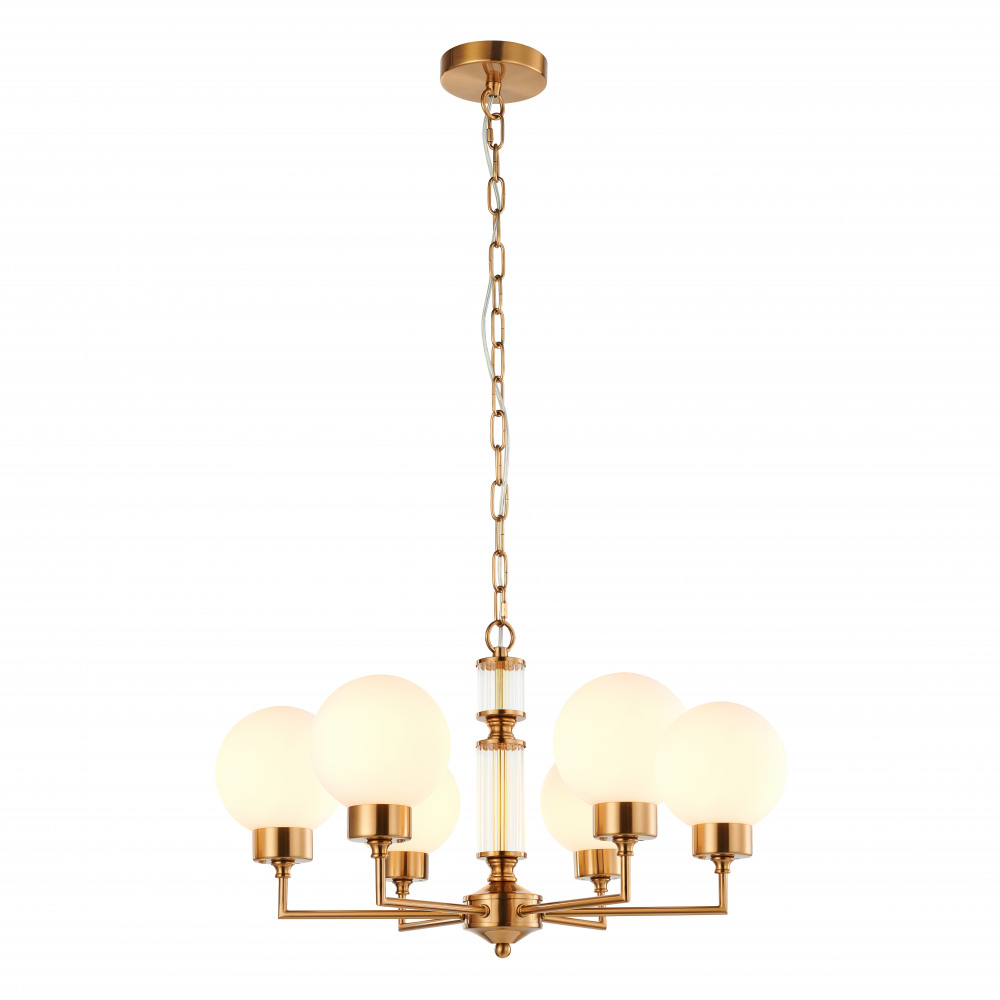 Каркас подвесной люстры создан из прочного металла, а латунный цвет придаст вашему интерьеру теплоты. Плафон выполнен в белом цвете, что добавляет модели легкости, элегантности и завершенность образа.