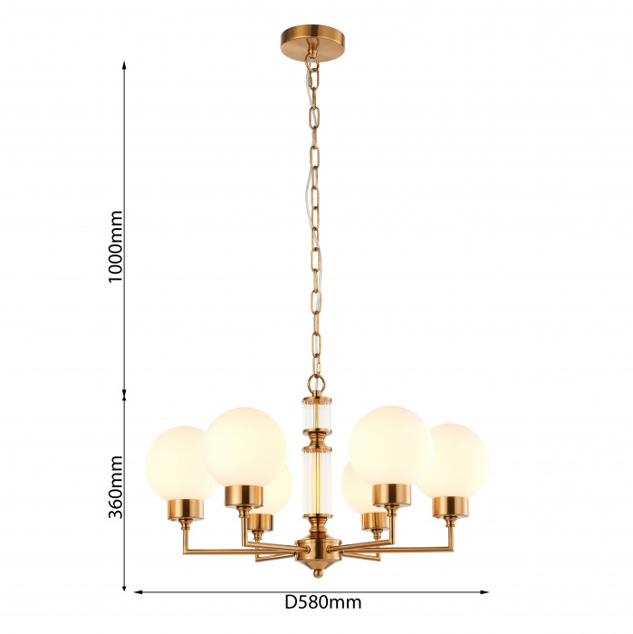 Размеры светильника: ширина 580 мм, высота мм. - такие габариты позволяют люстре идеально смотреться как в просторных, так и в небольших помещениях.