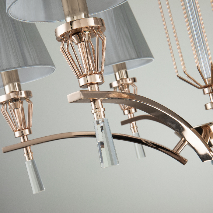 Эта модель подвесной люстры для гостиной идеально сочетается с интерьерами, оформленными в стиле классика, однако благодаря своему универсальному дизайну она также отлично будет смотреться и в других стилях, добавляя нотки шика, станет центральным акцентом в вашей комнате и принесет в неё дизайнерский шарм, тепло и изыск