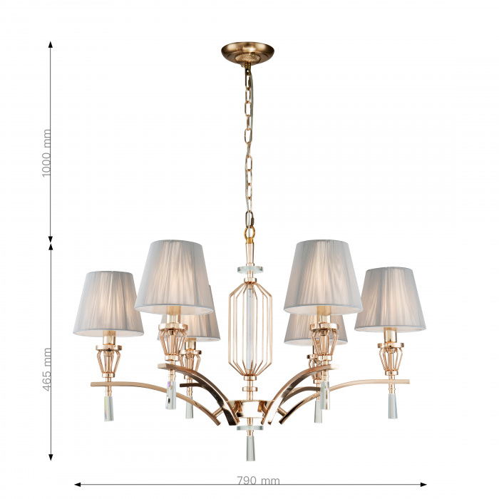 Размеры светильника: ширина 790 мм, высота мм. - такие размеры позволяют люстре идеально смотреться как в просторных, так и в небольших помещениях.