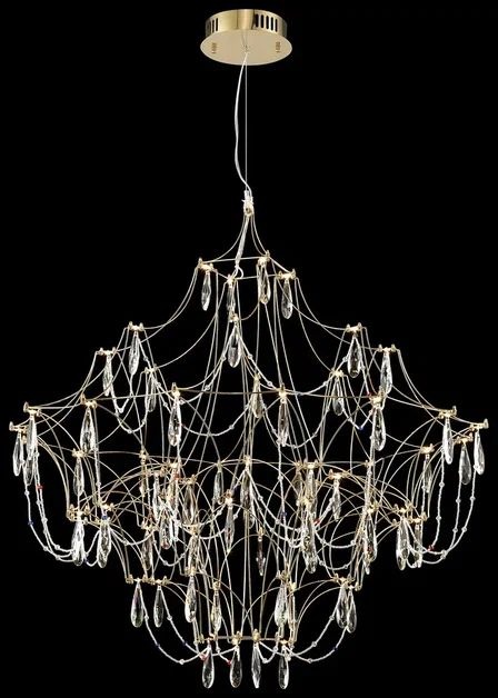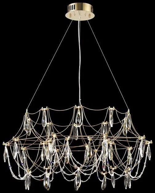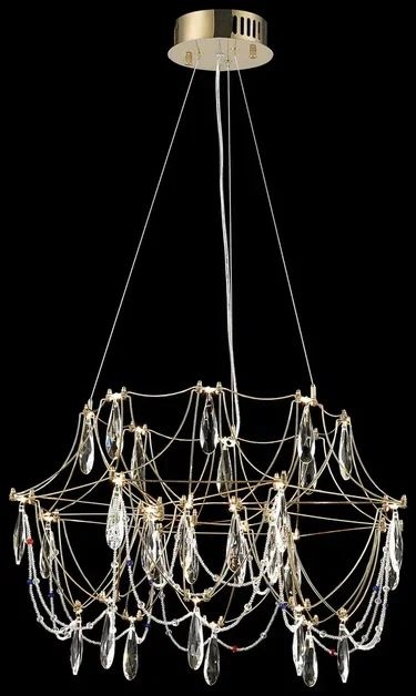 Корпус подвесной люстры сделан из высококачественного металла, хрусталя, а золотой, прозрачный цвет придаст вашему интерьеру глубины. Плафон выполнен в прозрачном цвете, что добавляет модели легкости, элегантности и завершенность образа.