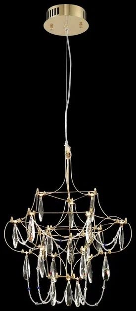 Корпус подвесной люстры сделан из высококачественного металла, хрусталя, а золотой, прозрачный цвет придаст вашему интерьеру глубины. Плафон выполнен в прозрачном цвете, что добавляет модели легкости, элегантности и завершенность образа.