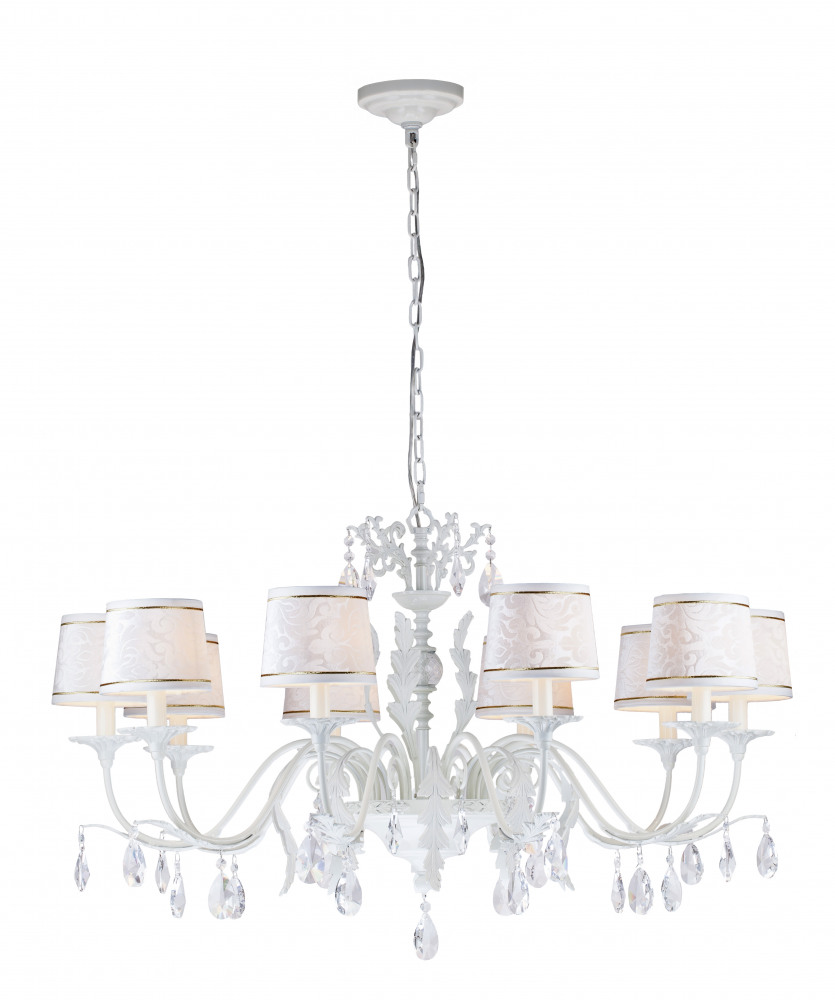 Чем модель выделяется среди других классических люстр на цепи и люстр на штанге? Благодаря 12 источникам света и крупному диаметру она уверенно «держит» просторные залы и двусветные гостиные, а кремовое стекло создаёт мягкую, теплую световую среду без излишней резкости. Это решение выбирают, когда нужно не просто освещение, а выразительная архитектура света, поддерживающая парадный характер пространства.