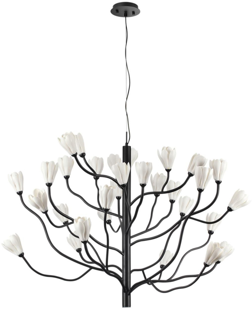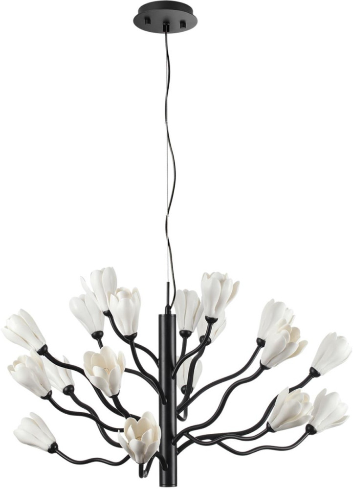 Эта модель подвесной люстры для идеально сочетается с интерьерами, оформленными в стиле флористика, однако благодаря своему универсальному дизайну она также отлично будет смотреться и в других стилях, добавляя нотки шика, станет визуальным акцентом в вашей комнате и принесет в неё дизайнерский шарм, тепло и изысканность