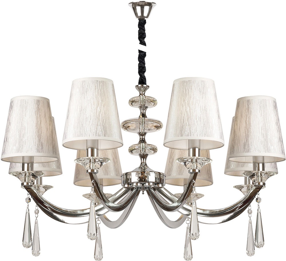 Эта модель подвесной люстры для спальни прекрасно сочетается с интерьерами, оформленными в стиле модерн, однако благодаря своему универсальному дизайну она также прекрасно будет выглядеть и в других стилях, добавляя нотки изыска, станет главным акцентом в вашей квартире и принесет в неё неповторимую атмосферу, тепло и изысканность