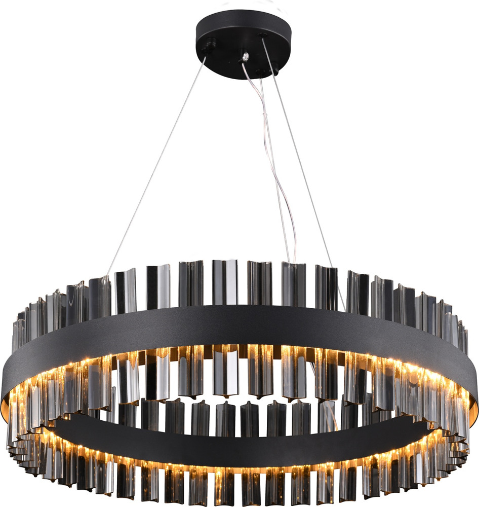 Каркас подвесной люстры создан из прочного металла, а чёрный цвет придаст вашему интерьеру элегантности. Плафон выполнен в дымчатом цвете, что добавляет модели легкости, благородства и завершенность образа.