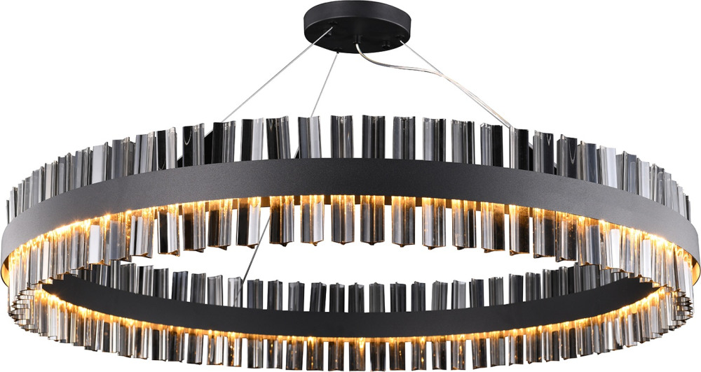 Каркас подвесной люстры создан из прочного металла, а чёрный цвет придаст вашему интерьеру элегантности. Плафон выполнен в дымчатом цвете, что добавляет модели легкости, благородства и завершенность образа.