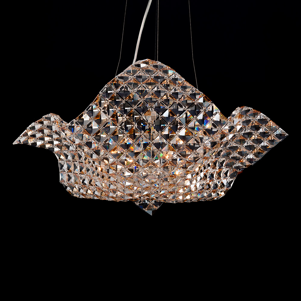 Эта модель подвесной люстры для спальни великолепно сочетается с интерьерами, оформленными в стиле современный, однако благодаря своему универсальному дизайну она также прекрасно будет выглядеть и в других стилях, добавляя нотки шика, станет центральным акцентом в вашей квартире и принесет в неё особенный шарм, тепло и изысканность