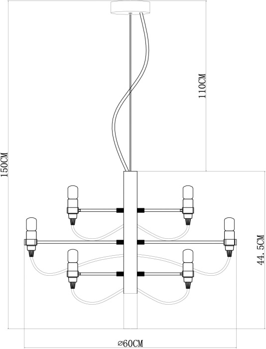 Размеры светильника: ширина 600 мм, высота 450 мм. - такие габариты позволяют люстре идеально смотреться как в просторных, так и в небольших помещениях.