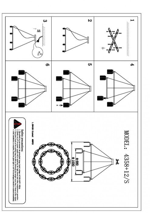 Размеры светильника: ширина 1030 мм, высота 420 мм. - такие габариты позволяют люстре идеально смотреться как в просторных, так и в небольших помещениях.