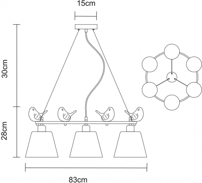 Размеры светильника: ширина 830 мм, высота 280 мм. - такие размеры позволяют люстре идеально смотреться как в просторных, так и в небольших помещениях.
