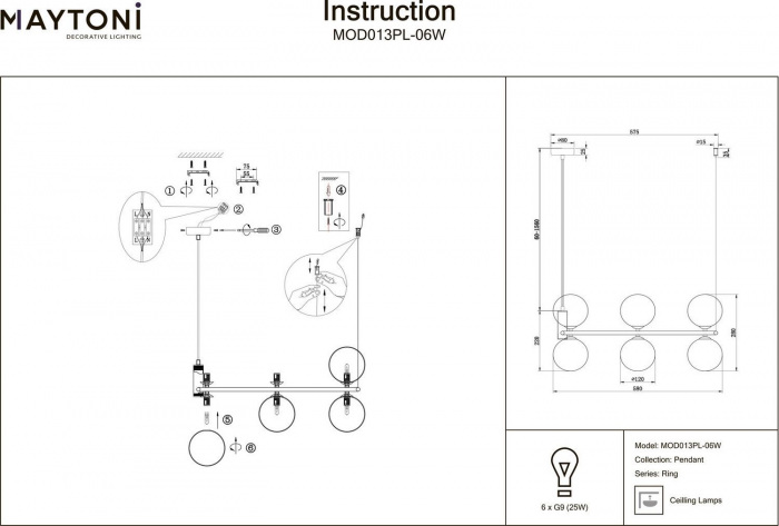 Итак, подвесная люстра MOD013PL-06W – это надежный и фирменный продукт от бренда Maytoni (Германия). Сочетание изысканного стиля и неповторимого мастерства делает его сильным выбором для вашего интерьера.