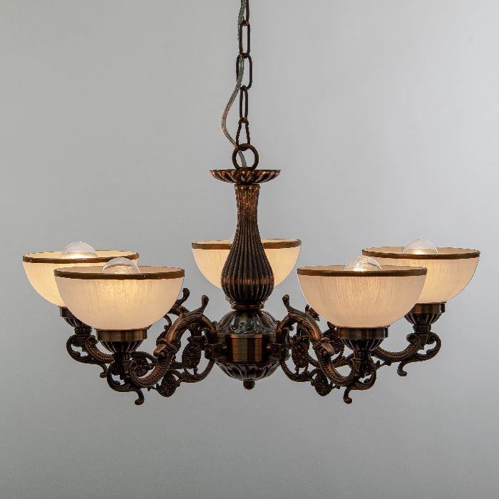 Для создания необходимого освещения в светильнике предусмотрены лампочки в количестве 5 шт. с цоколем E14 и общей мощностью 200 Вт., что обеспечивает комфортное освещение помещения площадью до 12 кв.м.
